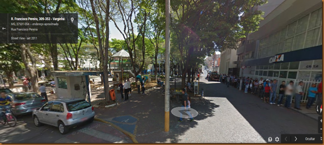 Pracinha da cidade. Note a fila de pobres coitados sofrendo abusos do banco público nojeiroso da Caixa. Triste. A praça é simpática também.