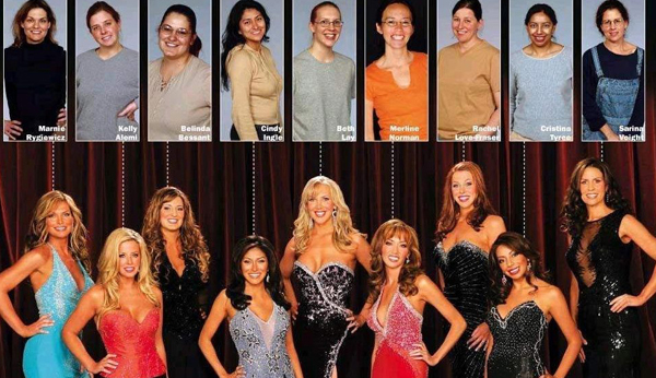 Bem vamos avaliar os casais: Aqui um exemplo. Uma nota 7 pra uns, 6 pra outros, com um nota 4,5 pra 5. Ele com cabelo ridículo ficando careca, testudo, braço fino, tetinhas baconzitos aparentes, pálido com sorriso lixo com uma branca razóavel de cabelo liso magra. Nada mal. Se ele consegue nós conseguimos.